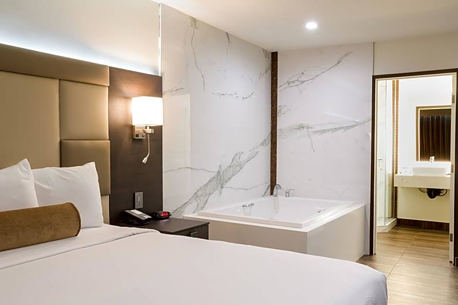 Room options range from the clean, modern Deluxe and Deluxe Pool View to the indulgent touches of Deluxe Jacuzzi and Loft. For romance or a special occasion, Honeymoon, Romantic Loft with Pool View and Jetted Tub, and Romantic Suite Jacuzzi set a sultry mood, while larger suites like Deluxe Suite and Suite Pool View offer ample space for groups or multi-generational stays.
